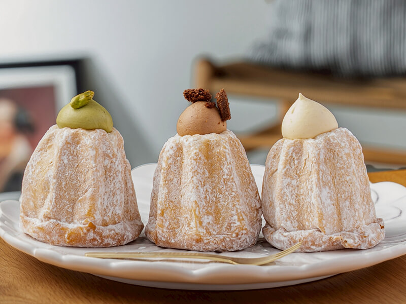 ふんわり、しっとりとした特別なパン生地に、毎日パティシエが炊きあげる手作りカスタードをたっぷり包み込みました。生地には「幻の小麦」と呼ばれる北海道産キタノカオリを使用。豊かな風味とやわらかな口どけを生かすため、約18時間じっくりと時間をかけて発酵・熟成させています。一晩かけて育てた生地ならではの、香り高く奥行きのある味わいが広がります。