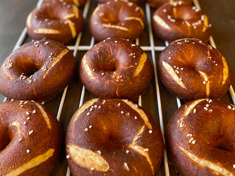ベーグル生地にバターを練り込みソルトを振りかけた香ばしいプレッツェルベーグル。そのまま食べてもサンドイッチにしてもおすすめです。