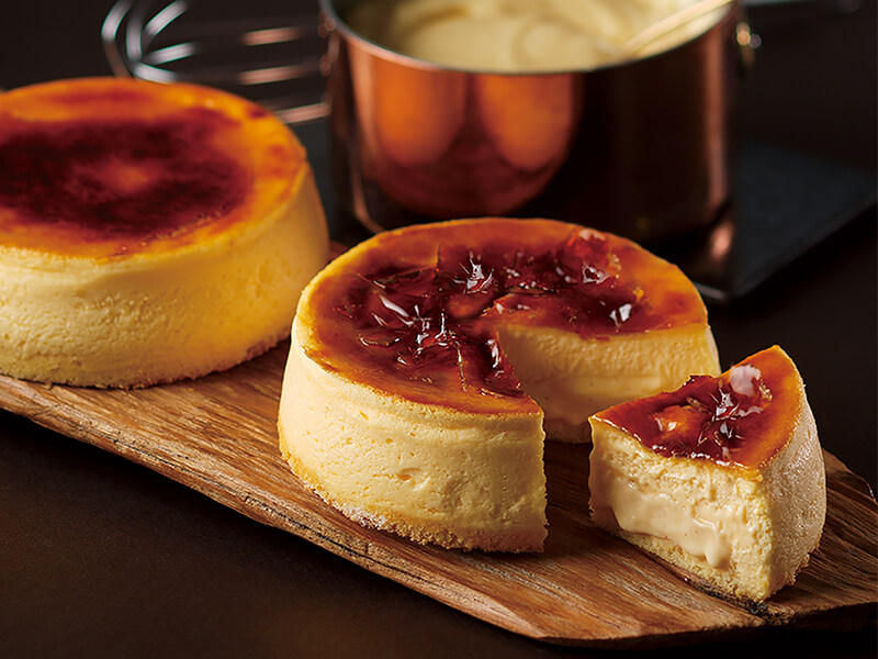 阿蘇・小国ニュージャージー牛乳を使用したなめらかなカスタードクリームを、九州産クリームチーズのふわふわスフレで閉じ込めました。仕上げに表面を香ばしくキャラメリゼした自慢の一品です。
