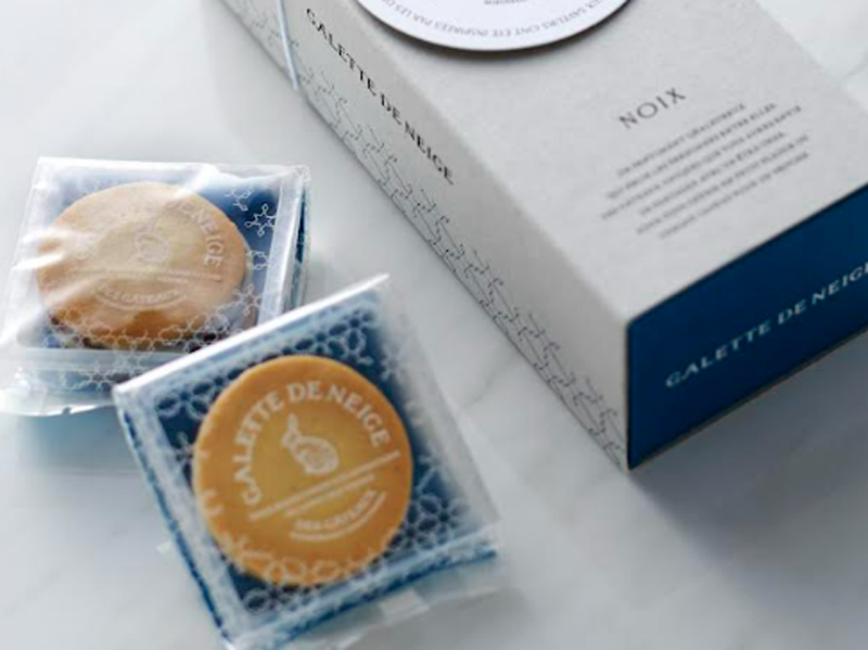 手作業で丁寧に組み立てた、贅沢なスイーツ。やさしい甘みのくるみをたっぷり混ぜ込んだケーキを、ミルキーなホワイトグラサージュでコート。バターと小麦が香る、口どけの良いガレットでサンドしました。