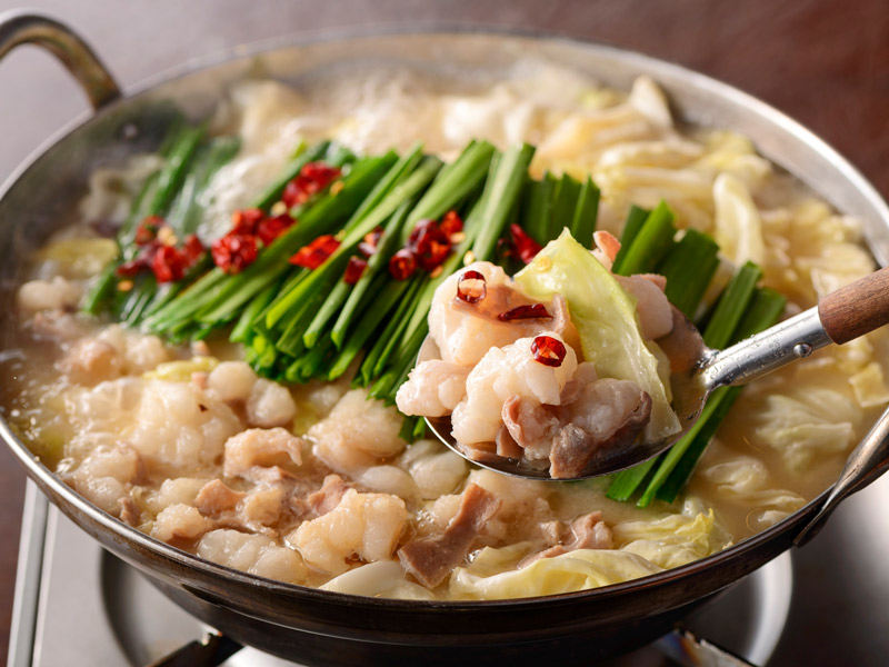 もつ鍋職人こだわりの特製4種スープに、厳選された国産の牛ホルモンを使用した本格博多もつ鍋です。