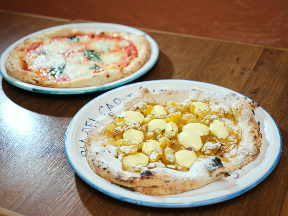 モチモチっとした生地は噛むほどに小麦の香りが広がり、塩だけで味付けしたトマトソースの旨み、バジルの香りが追いかけるように現れます。ハチミツをかけてコクが増したサツマイモの甘みと、とろけたマスカルポーネが混ざり合う濃厚な味わいを引き立てるのは生地の塩気。「PIZZERIA DEL CAPITANO(ピッツェリア デル カピターノ)」のピッツァを頬張った取材スタッフは、「おいしい!」と思わず顔を見合わせて大喜び!宮本さんが生地から手作りするピッツァは、耳までおいしい、耳こそ味わいたい絶品でした。