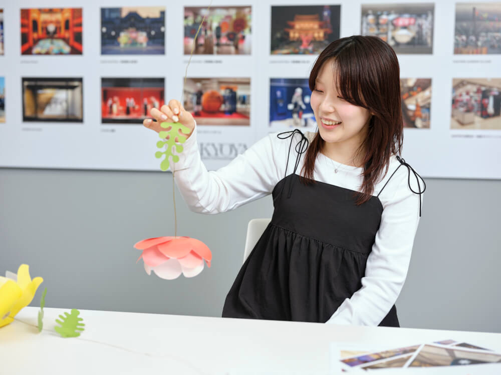 「装飾の仕事のおもしろさは、人に見ていただけること。お客さまの反応が見られるのはもちろん、自分自身がその場に立ったときに達成感が得られます。そしていつか、自分がデザインしたものが街のさまざまな場所で見られるようになり、街を構成する一部になれたらうれしいです」