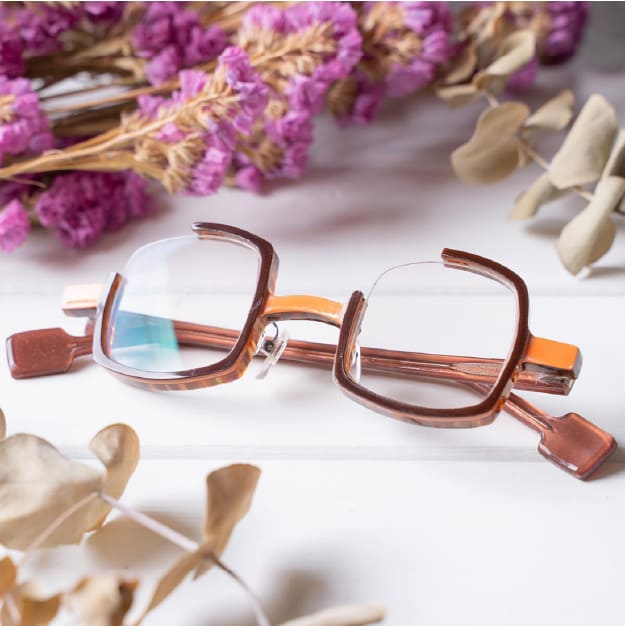 フロントの一部が空いているメガネで、四角のデザインもかわいらしく。こんな印象を与えたい、こんなふうに見られたい、お顔を小さく見せたいなど、「こんなメガネが欲しい」という、いろいろなご要望にお応え。世界で一つの自分だけのフレームに出会えます。