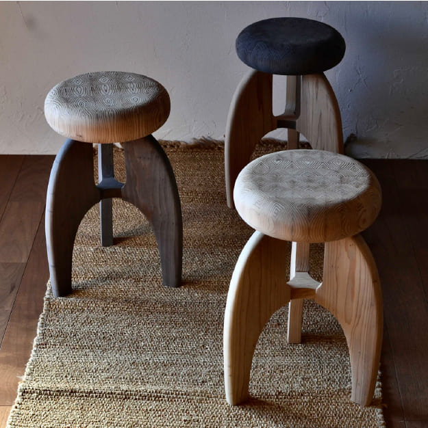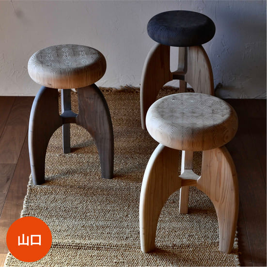 一本の木だけでは生まれない、魅力ある木の年輪の表情を組み合わせて作ったスツール。家具メーカーや飛騨高山での木工修行を経てドミニカ共和国での木工指導を経験後、山口県周防大島へ移住。スローでリラックスしたナチュラルな暮らし方を大切にしています。