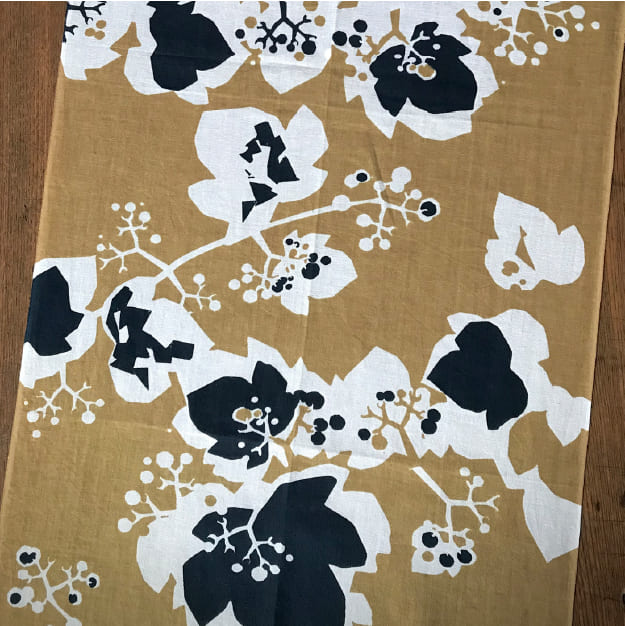 シルクスクリーン捺染(なっせん)による手仕事で染めあげた手ぬぐい。地元小樽で出会った「野ブドウ」の姿を描きました。市の鳥「アオバト」の目から見た景色の絵柄を手ぬぐいや風呂敷に乗せ、心地よく日常使いできる手ぬぐいや風呂敷を制作しています。