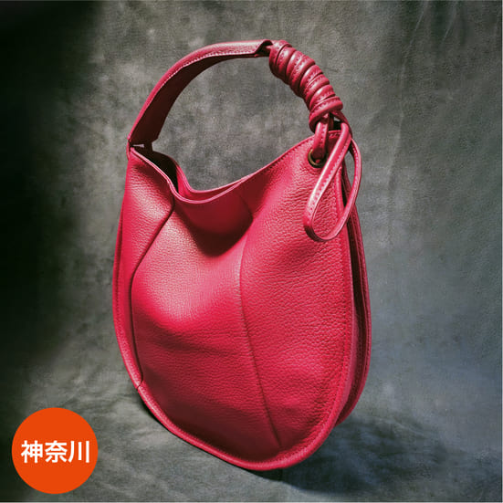 シンプルな丸いフォルムで、ショルダーの長さは自由に調節可能。服装やシーンに合わせて幅広くお使いいただけます。セミオーダー形式で、革や裏地の色をお選びいただき、さらにポケットの追加など、使い勝手の良さを追求。オリジナルの革製品を製作しています。