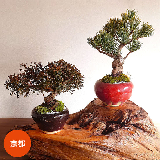 植物:(左)シンパク、(右)五葉松
