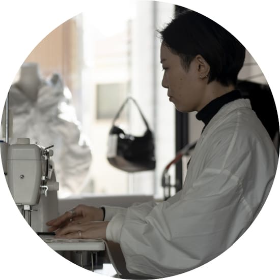 自然に生まれる美しい動きを捉えてカタチにしたコレクション「SIWA」。日々過ごす中で、ふと身の周りにあふれている「皺」に着目。身体や洋服などの動く瞬間に生まれる皺の可能性に魅了され、ありのままの美しさやテクスチャーを独自の技法で表現しています。