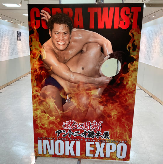 コブラツイスト顔出しパネル投稿必至!伝説の名場面をあなたの顔で再現。