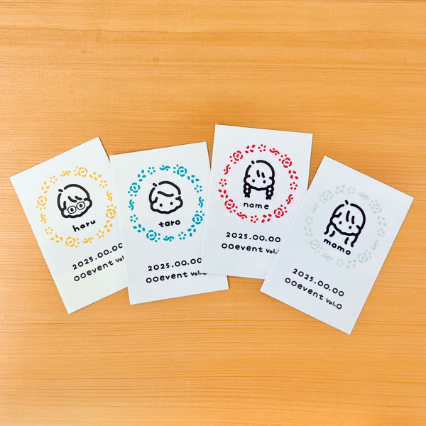 似顔絵の画像データと、その場で似顔絵をプリントしたシールをセットでお渡しいたします。