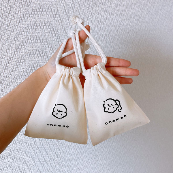 ミニサイズの巾着袋にその場で似顔絵とお名前を描いてお渡しいたします。