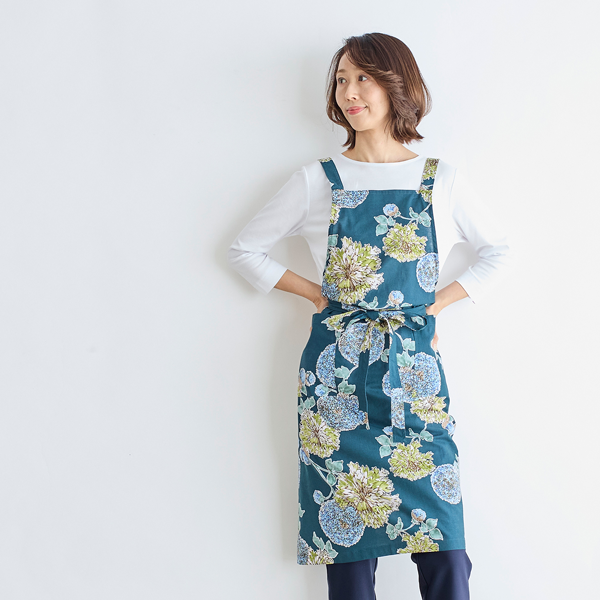 華やかなアリウム柄は、普段使いだけでなく、おもてなしのシーンでも活躍すること間違いなし。着けるだけで気分があがり、家事も捗りそうです。