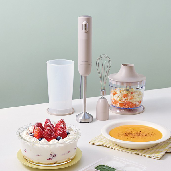 1台で「つぶす・混ぜる・泡立てる・刻む・砕く」の5役をこなし、レンジ・食洗機対応カップで後片付けも楽なタイパ抜群の商品。約470gと軽量で女性でも扱いやすく、毎日の料理負担を減らせます。