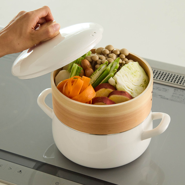 素材の味を活かしたヘルシーな蒸し料理が手軽に楽しめるアイテム。せいろを外せば煮物や茹で調理用の両手鍋としても使え、1台で幅広く活躍します。健康志向なお母さんや、SNSで話題の本格調理を自宅で楽しみたい方へおすすめです。