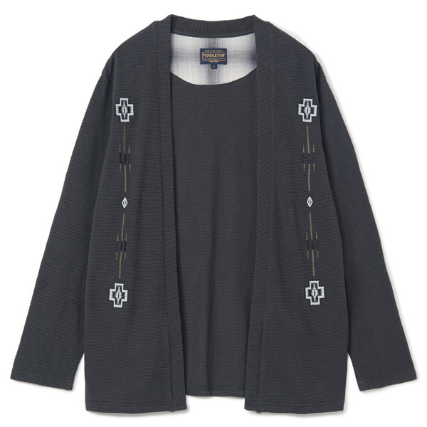 フロントに〈ペンドルトン〉を象徴するネイティブ柄を刺繍であしらい、プリントとは異なる立体感と上質さでコラボレーションならではの存在感を表現しています。