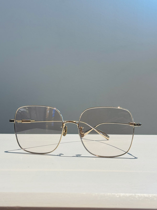 細身で大ぶりなシルエットのスクエアフレーム。フラットレンズを採用することで、70年代を彷彿とさせるモデルです。