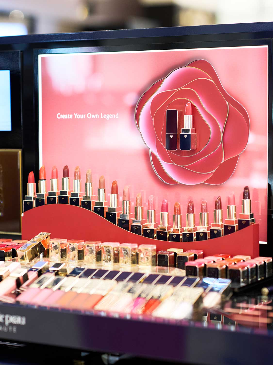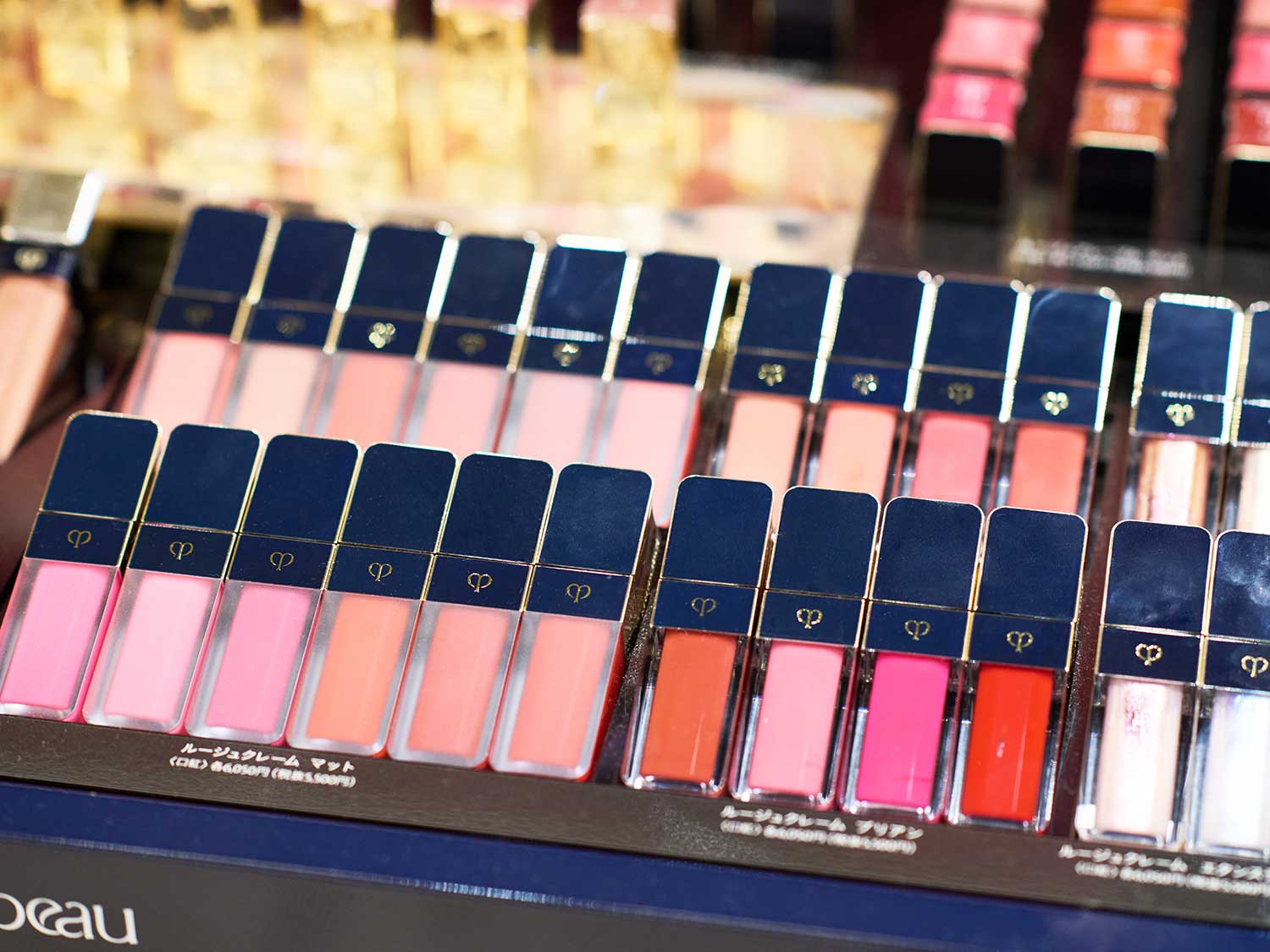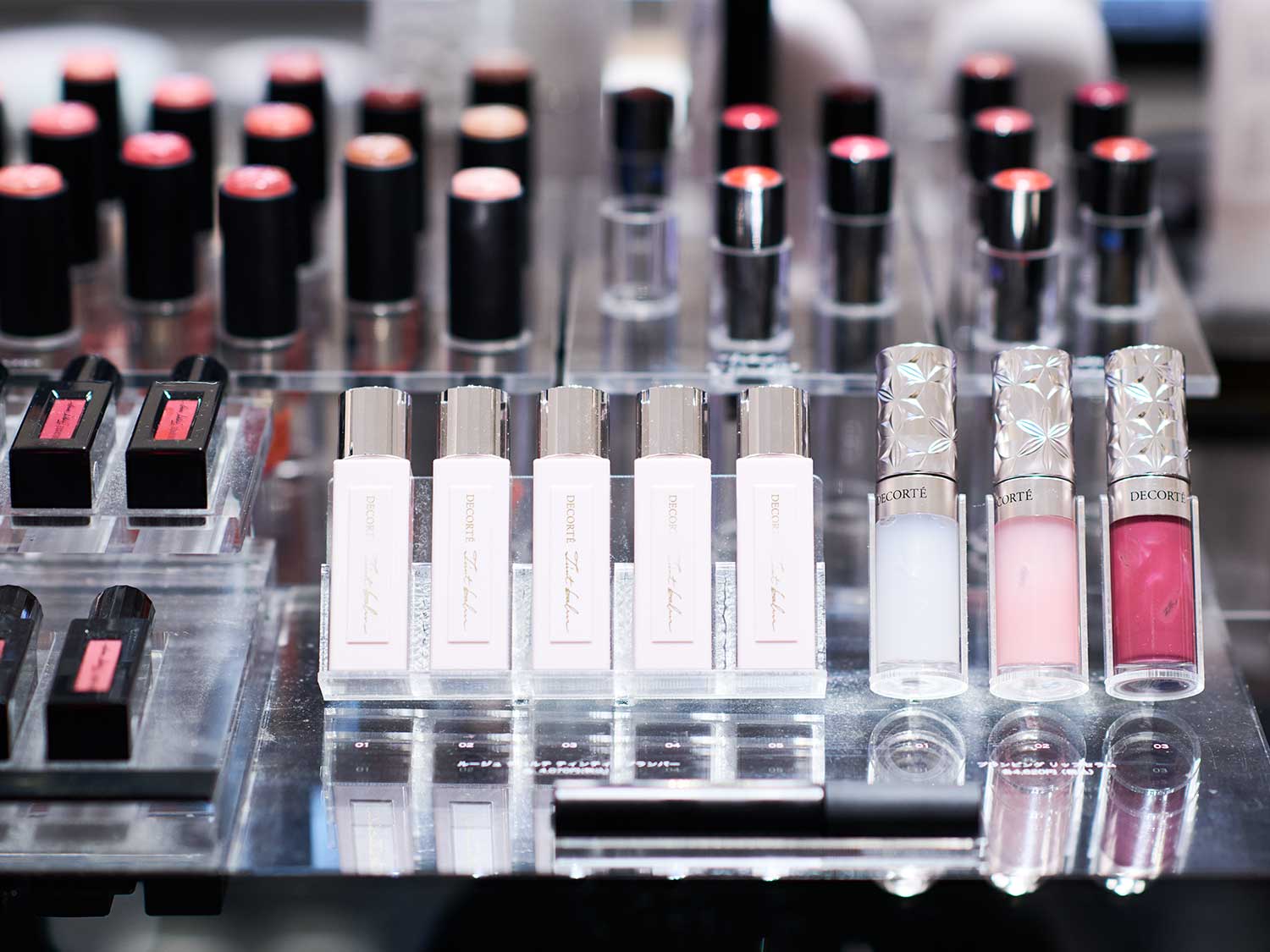 心斎橋店にはメイク好きなスタッフが多く、さまざまなムードのメイク提案も可能。2025年上半期に発売され大きな注目を集めたルージュデコルテをはじめとしたカラーアイテムから、ヘアメイクなど美容のプロにもファンの多いベースメイクアイテムまでタッチアップも可能です。