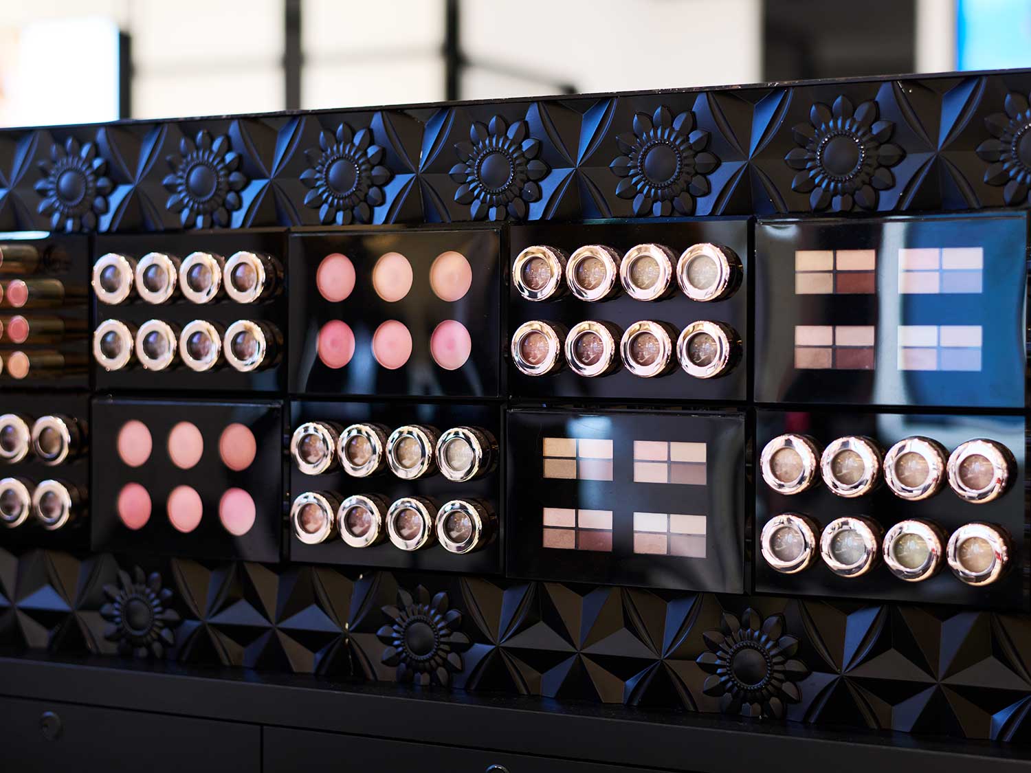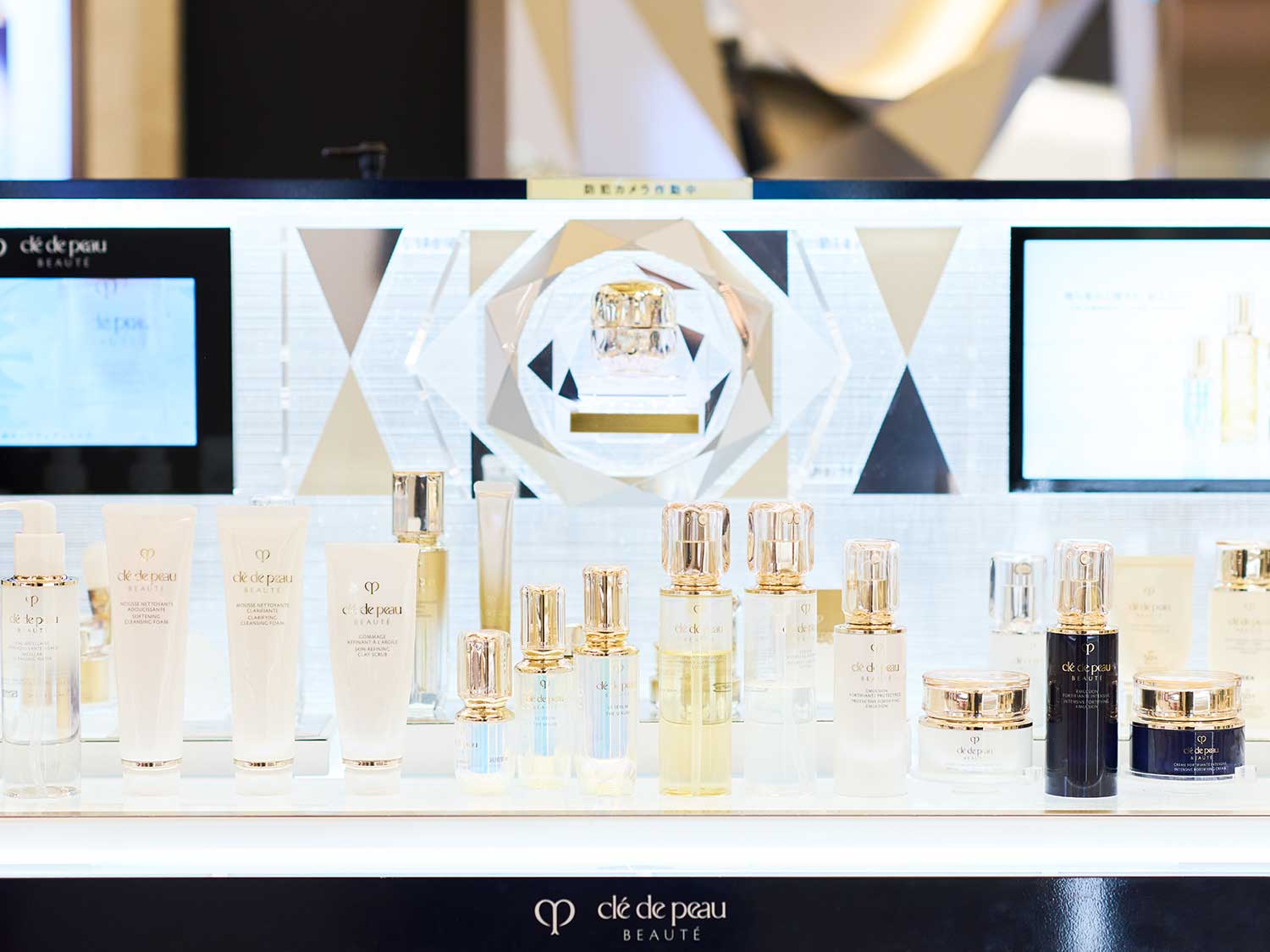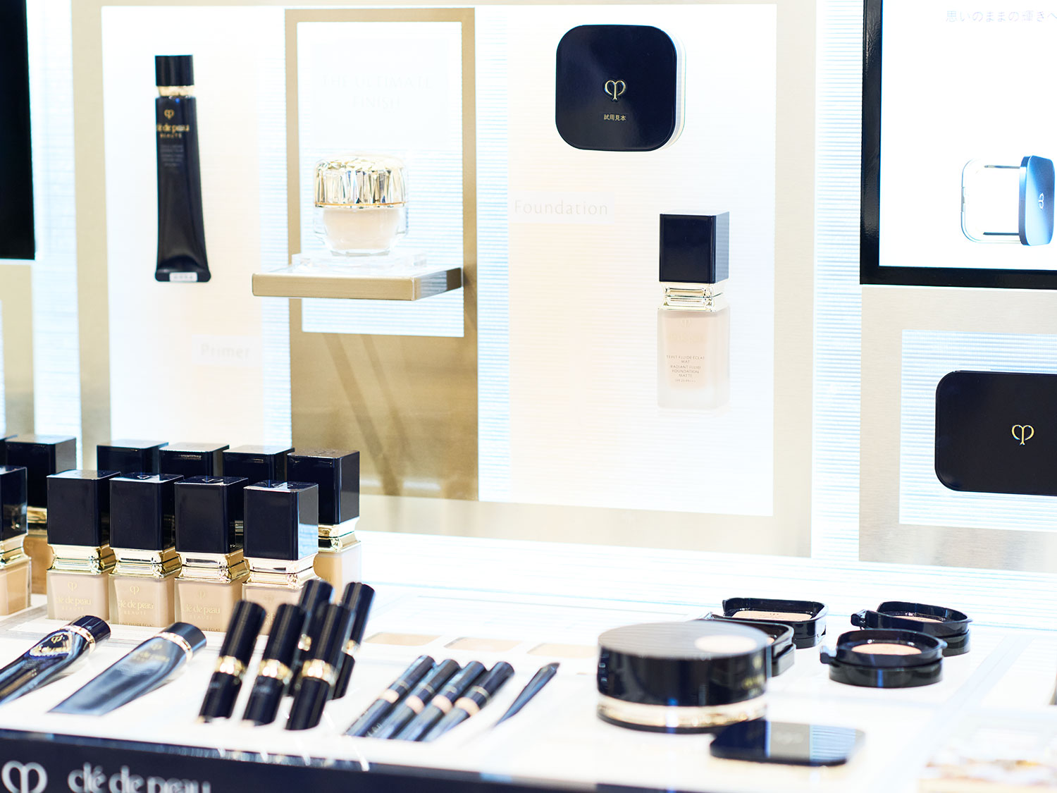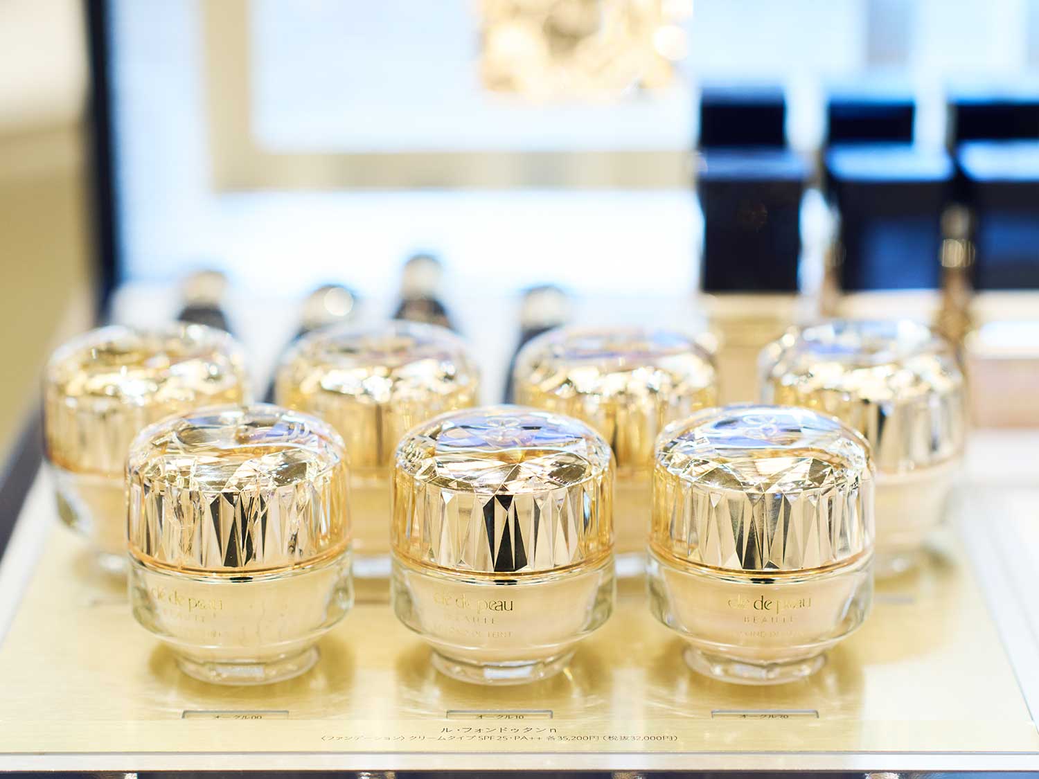 店頭には、最高峰ファンデーション、ル・フォンドゥタンをはじめ、“名品”と謳われるアイテムがずらり。ゆったりとしたタッチアップスペースが完備されており、気になるアイテムを心置きなくチェックできます。