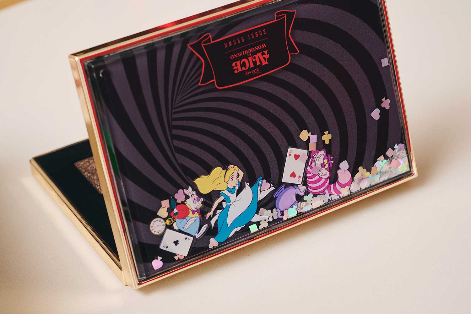 剱持:BOBBI BROWNの「アリス イン ワンダーランド アイシャドウ パレット」のパッケージが秀逸すぎます……!パレットを軽く振るだけでアリスやチェシャ猫、白うさぎが動くんです。