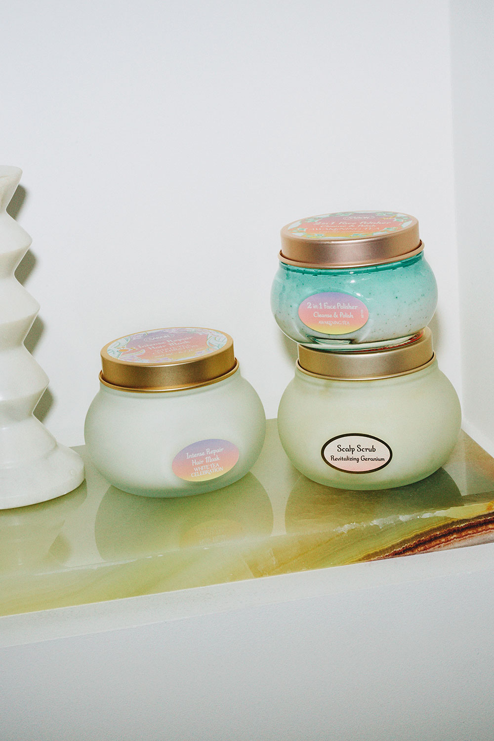 SABONを代表する3STEPボディケア製品、2in1スクラブ洗顔のコレクション限定品、「ホワイトティー」にインスパイアされた限定オー ドゥ トワレがセットになったPOP UP SHOP限定特別キットも登場。