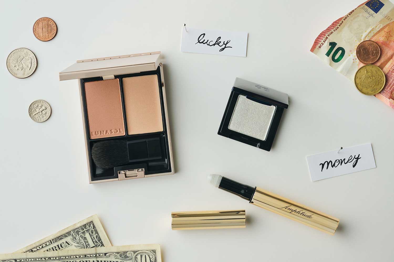金運アップを叶えるアクションとして“西に黄色”が有名ですが、実は中国では“西にホワイト”が定番だそう。さらに金運は大地と光のパワーに関連しているので、金運重視で選ぶなら、大地を連想させる明るめのブラウン(ベージュでもOK)、そしてラメ入りの輝くホワイトがおすすめ。また陰影をしっかりつけるのも運気アップにつながります。ホワイトのハイライトとブラウンのシェーディングをメイクに取り入れて。