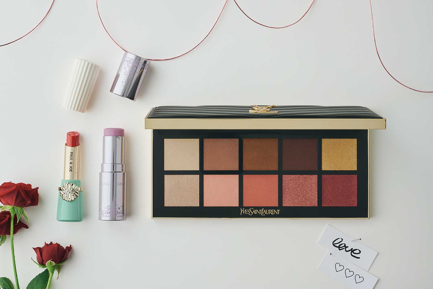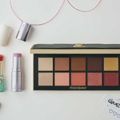 今年の恋愛運のラッキーカラーである赤のほか、金運アップのブラウンや白、健康運アップのイエローやコーラルもIN。質感もマットやグリッター、メタリックと多彩で、これ1つあればさまざまなムードをつくれる。シャドウだけでなく、ハイライターやチーク、シェーディングとしても使用可能。