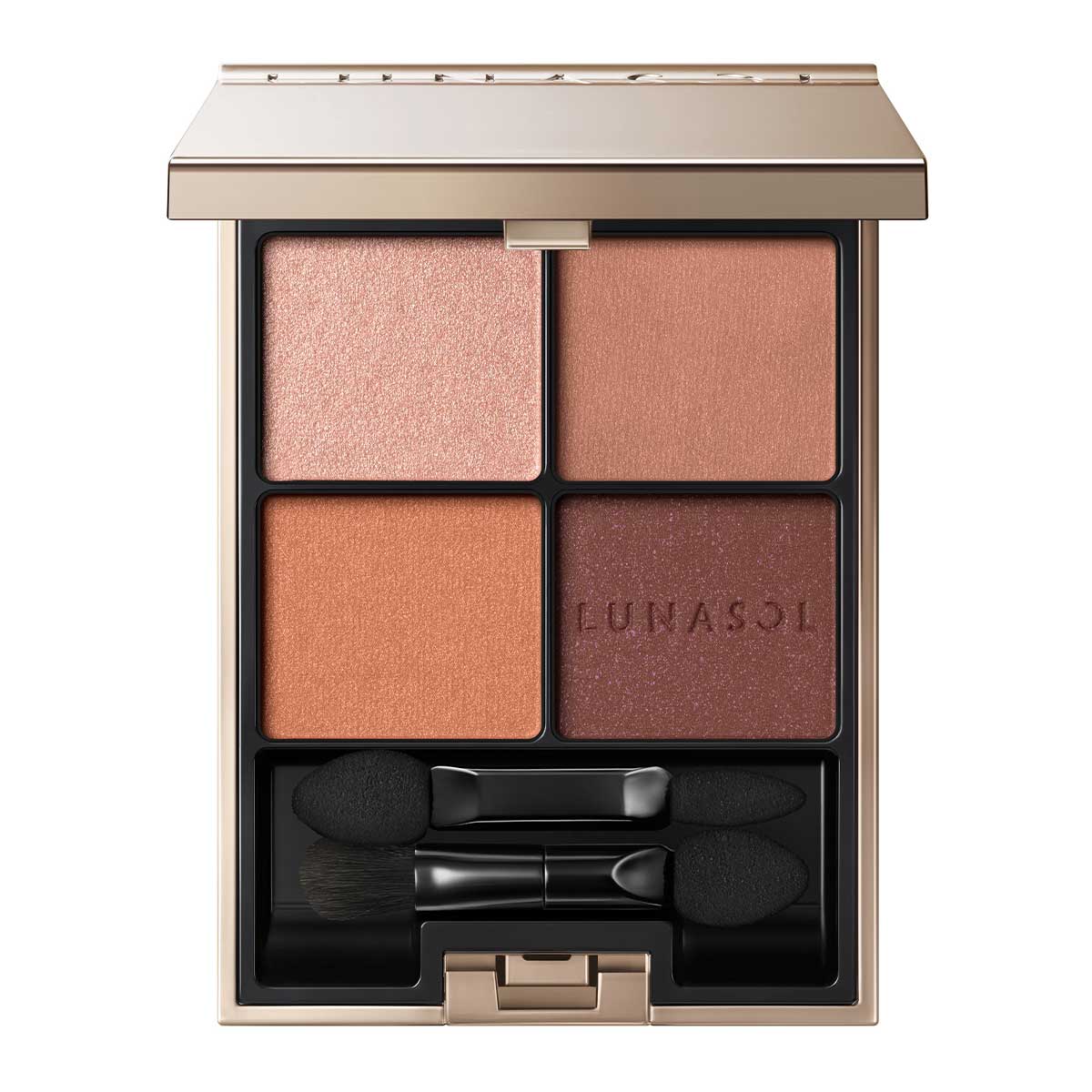ルナソルが得意とするベージュにまろやかな赤みをプラスして、センシュアルな雰囲気に仕上げたパレット。重ねても濁りにくいためシームレスになじんで、奥行きのあるまなざしに。