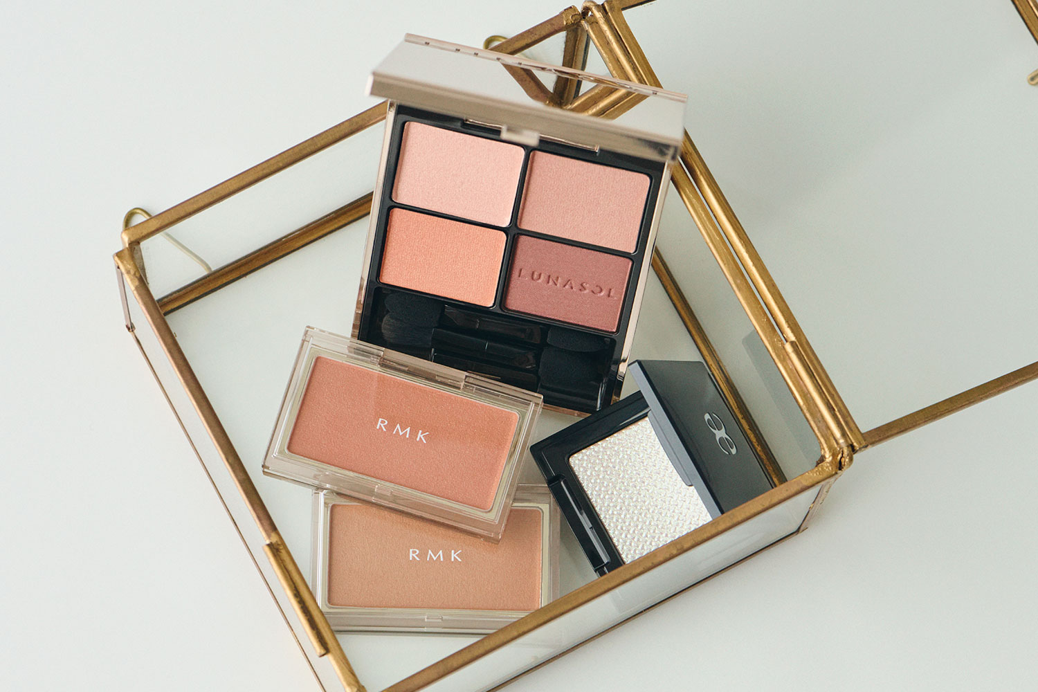 マスク着用が個人の判断になったことでますます注目が集まるチーク。RMKのピュアコンプレクションブラッシュ は、オレンジとブラウンが絶妙なバランスで暖色系のメイクにも寒色系のメイクにも似合う。ヘルシーな存在感で全体のバランスをほどよく整えつつ、“オシャレさ”までプラスできるところが魅力です」(林さん)