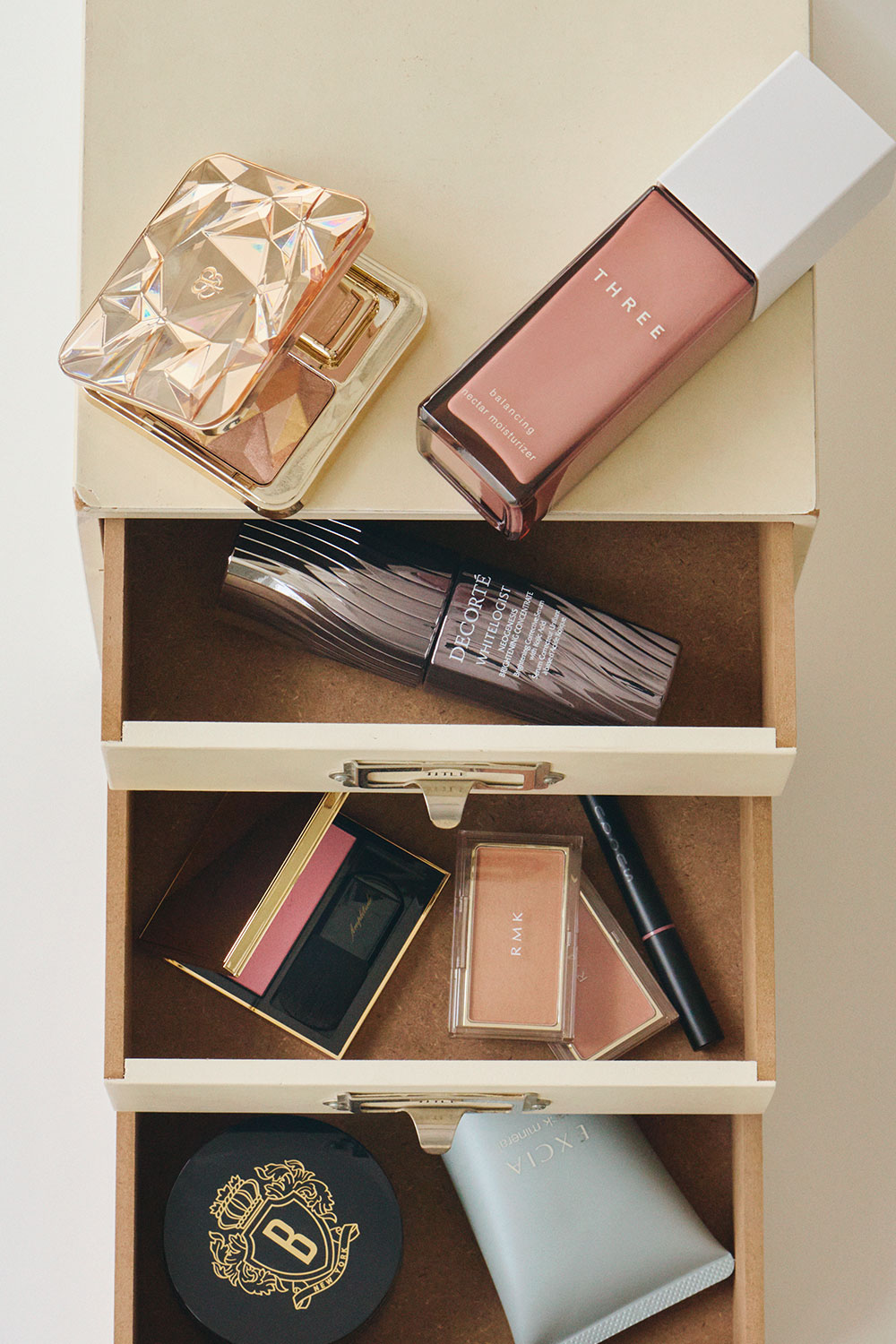 顔の中心はどうしても皮脂が出やすく、ベタついてメイクが崩れがち。そんなときでもボビイブラウンのリュクス ラディアンス ルース パウダーをメイクの上からふわっとのせるだけで、ベタつきをカバー*して、ごく自然な美肌へと導いてくれます。メイク上手になったかのような肌の仕上がりになれる今期のお気に入りパウダーです」(戸塚さん)