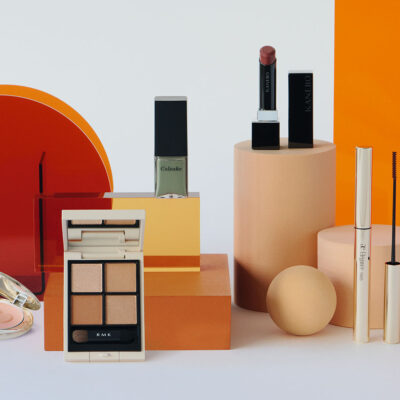 淡いカラーを重ねて陰影*1を操るミュートメイク。デイリーに活躍するメイクですが、この春はきらめき*1やつやをトッピングすることでアップデートを。血色*1を感じるマットなベージュを擁するアイパレットで“彫り” *2を強調しつつ、くすんだベージュトーン×大粒パールのシャドウのきらめきで、密やかな“華”をトッピング。チークとリップには温もりを感じさせるまろやかなカラーを選び、マスカラもブラウンに。全てのパーツに強い色を使わず、ヌケ感のある色を使うことで、優しく洗練されたムードを宿せます。