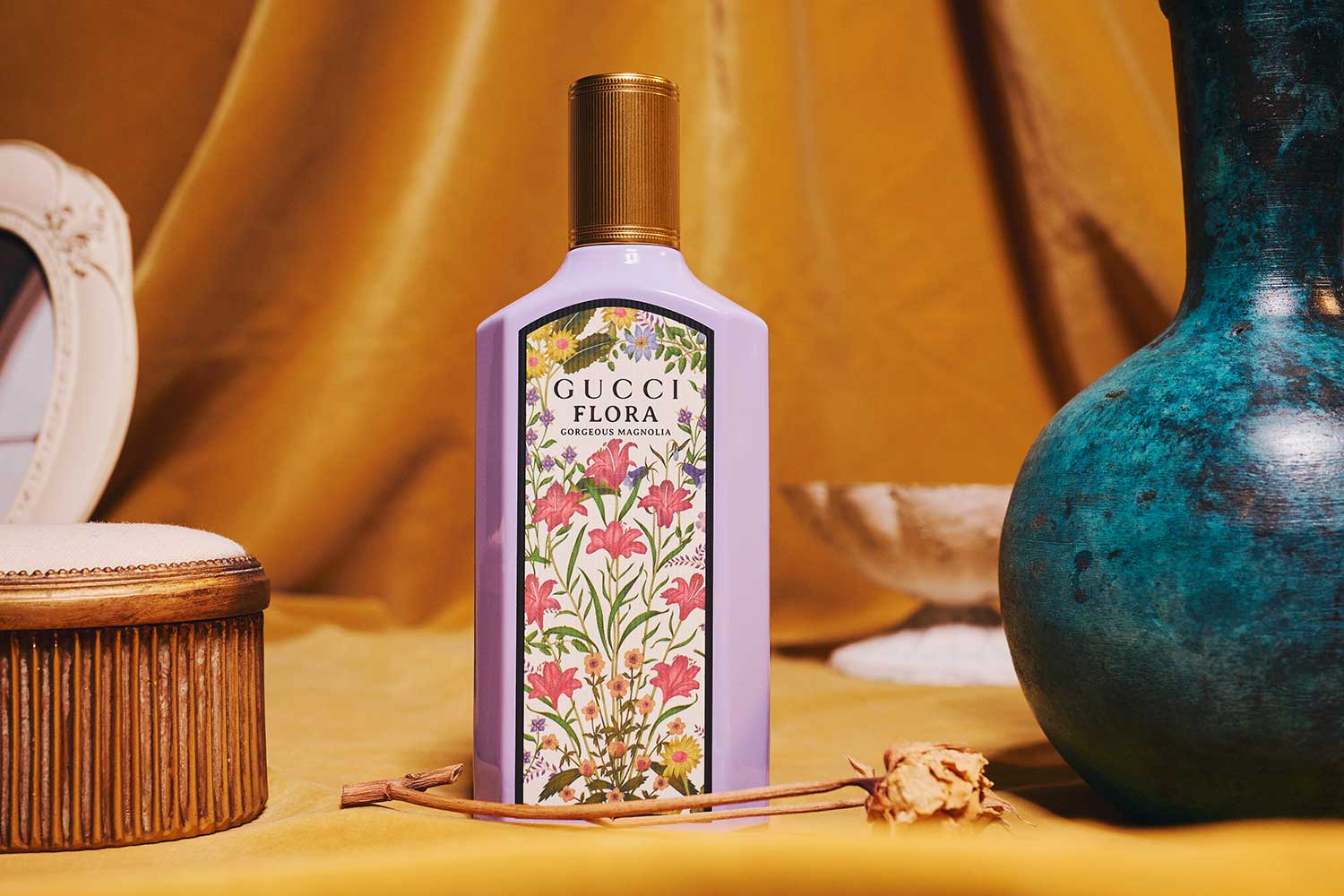 かつてモナコ公妃であったグレース・ケリーのために生まれたというフローラプリントをあしらったボトルが目印。ポジティブで自由。そんな女性像をイメージして生まれたこのフレグランスのキーは、華やかさやパワーを持つマグノリアアルバ。さらにデューベリーやジャスミン、パチョリやウッドを組み合わせ、GUCCIらしい洗練されたフローラルフルーティノートを実現。