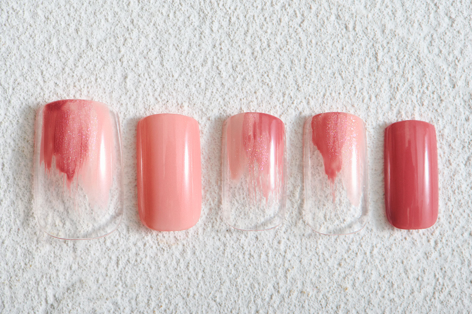 スイートなムードが好みなら、濃淡のピンクに同色のラメを組み合わせたピンクバージョンを。上品なムードだから、オフィスでも。