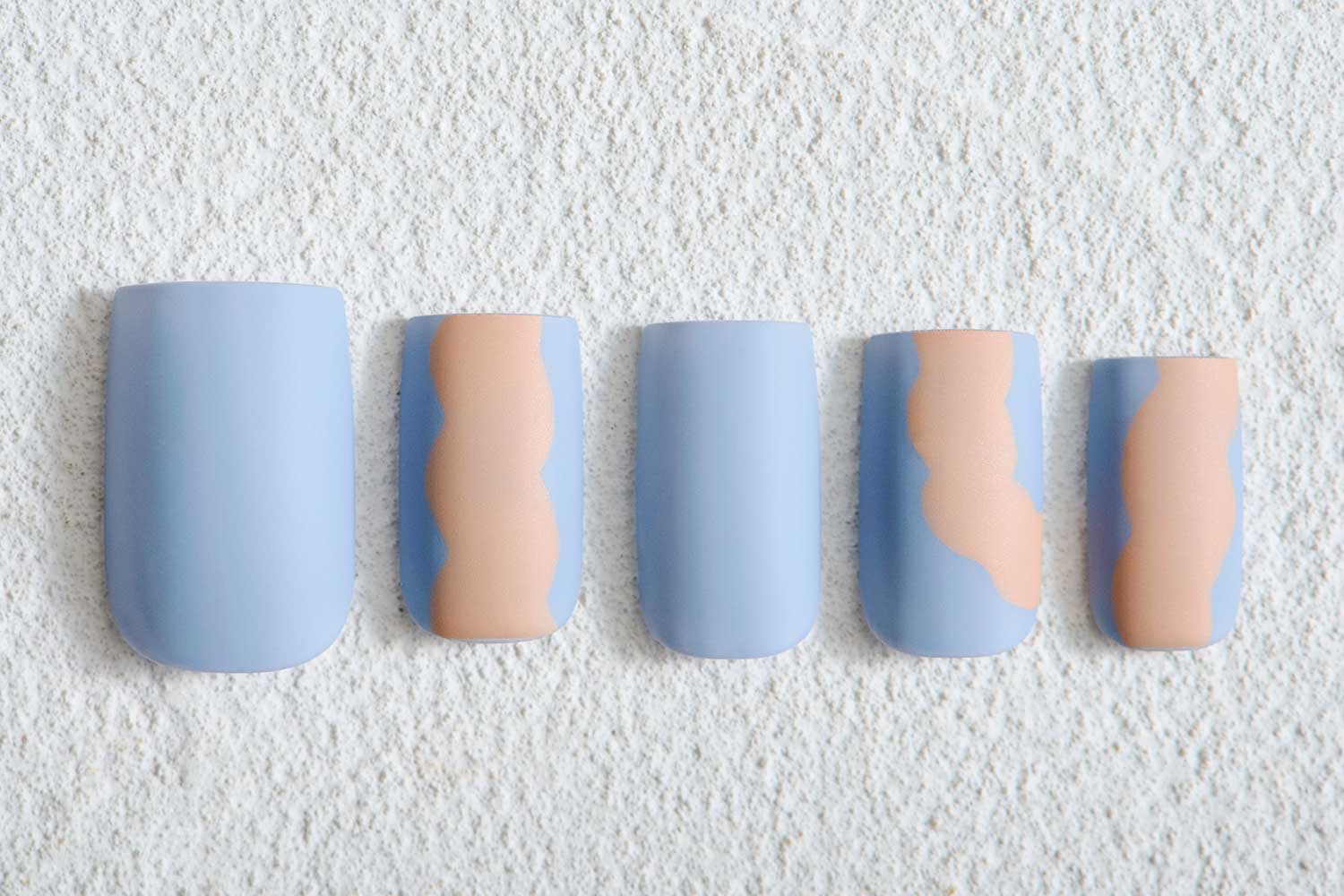 不規則な“うねうね”なデザインがちょっぴりアーティ。暖色、寒色、濃い、淡いを問わずハマるデザインなので、色を気分やファッションで変えても楽しい。マットなトップコートをプラスすることでよりモードなムードをプラス!