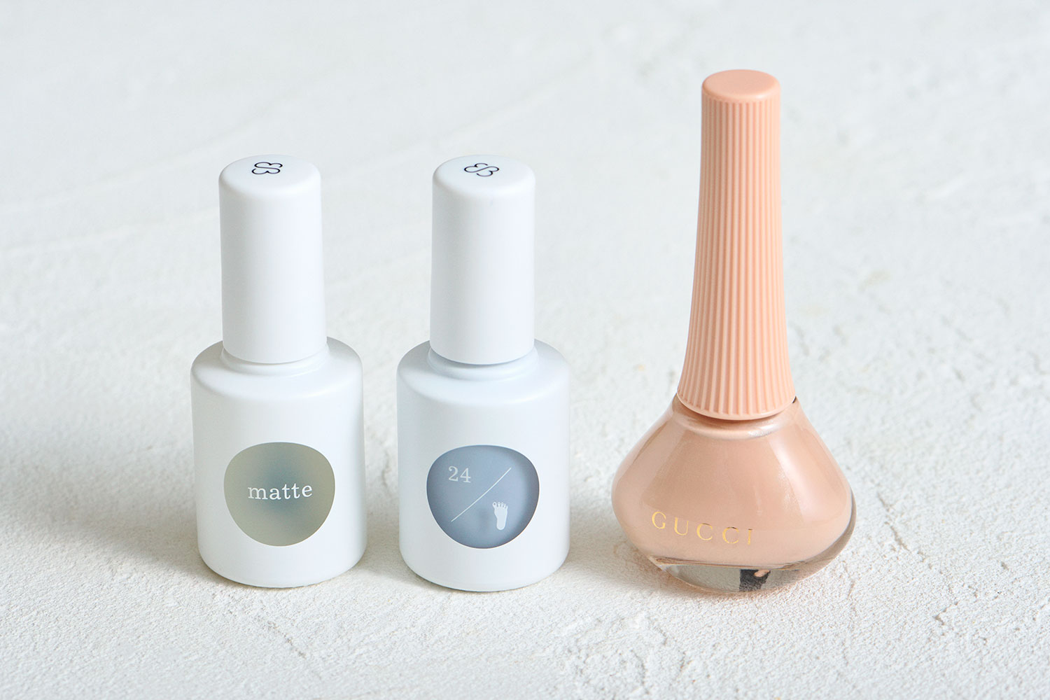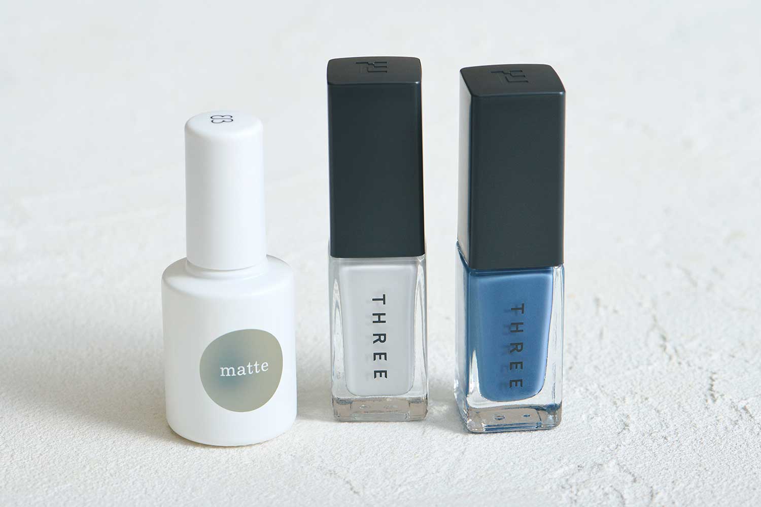 ひと塗りで磨りガラスのようなマット質感になるトップコート。手持ちのネイルに重ねるだけで、気分も変わる。
