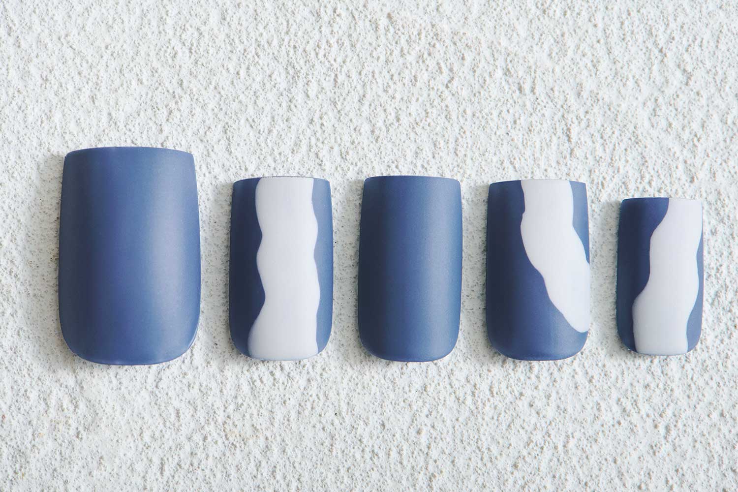肌色とのコントラストで肌映え効果を発揮するインディゴブルー。2度塗りすれば、よりクールな発色に。