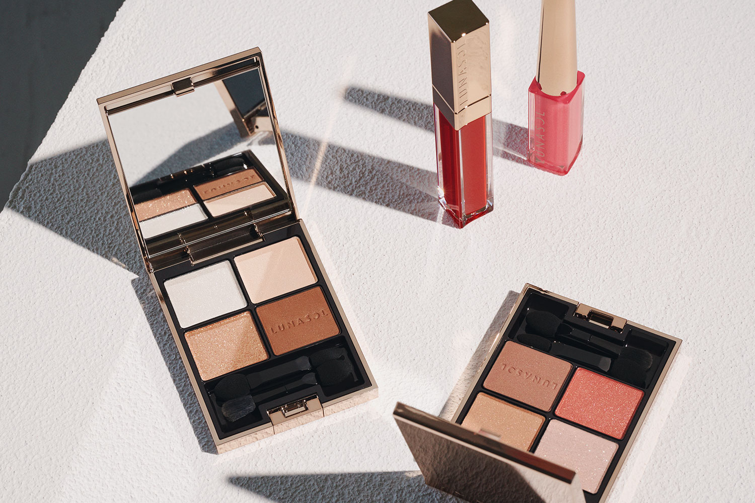 ルナソルのカラーアイテムは、洗練を極めた色と質感で新作が出るたびに人気。今回、ルナソルがレコメンドするのは、定番人気のベージュパレットと5月17日発売のサマーコレクション。アイカラーレーション15は、ルナソルが得意とするベージュをキーとした4色パレット。限定で発売したところ話題を呼び、定番化したという逸話を持つ名品です。同じくアイカラーレーションのEX40は、サンセットの輝きを表現したオレンジ〜ベージュ系パレット。華やかさを表現しつつ、絶妙な肌なじみのよさで使いやすさをも併せ持つのはルナソルなればこそ。フラッシュクリエイター EX15は、多彩なパールがきらめく*リクイドアイライナー。目尻などに短く引いてもキラリと輝いて*プレイフルな目元に! ツヤリップが注目を集める今こそ取り入れたいのが、リップグロウフラッシュEX02。鮮烈な色とピュアなツヤで夏らしさを満喫できます。