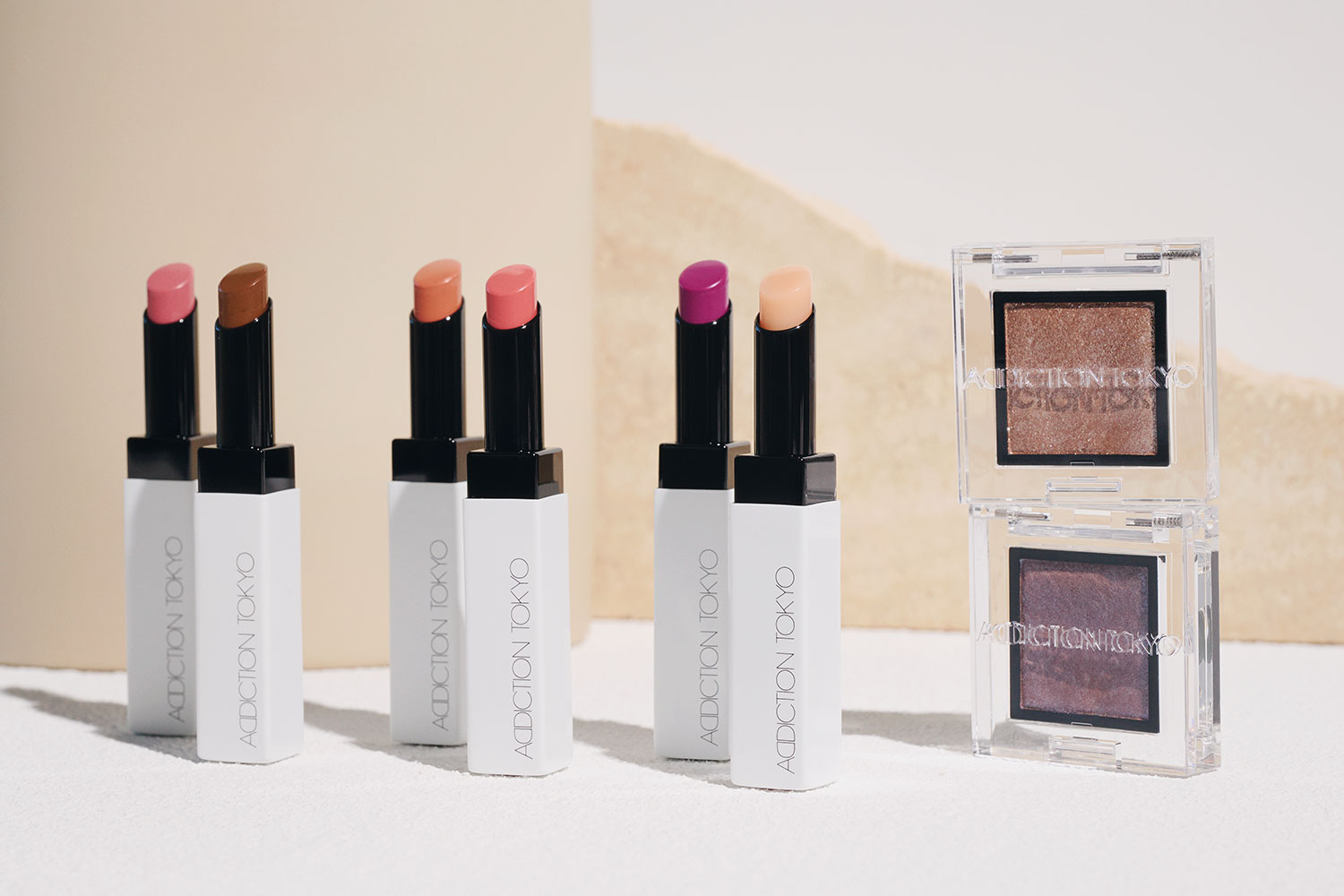 エッジの効いたカラーや質感で、取り入れるだけで旬の顔になれるアディクションのカラーアイテム。この夏の新作の中でも注目は、しっとりマットな仕上がりのリップバームと軽やかなツヤを持つティントリップ。どちらもヴィーガンフレンドリーな仕様で、マットなリップバームは、ノールックで塗れるほどのスムースなテクスチャーとモードながらも肌なじみのいいカラバリが魅力です。一方ティントリップは、じゅわりとメルティな塗り心地。透け感ある発色でディープな色みでもカジュアルに楽しめるはず。さらにアディクションの名品、アイメイクに華をもたらすスパークルな単色アイシャドウは、そのまばゆいきらめき*で少量でも存在感たっぷり。オケージョンメイクにも活躍してくれます。