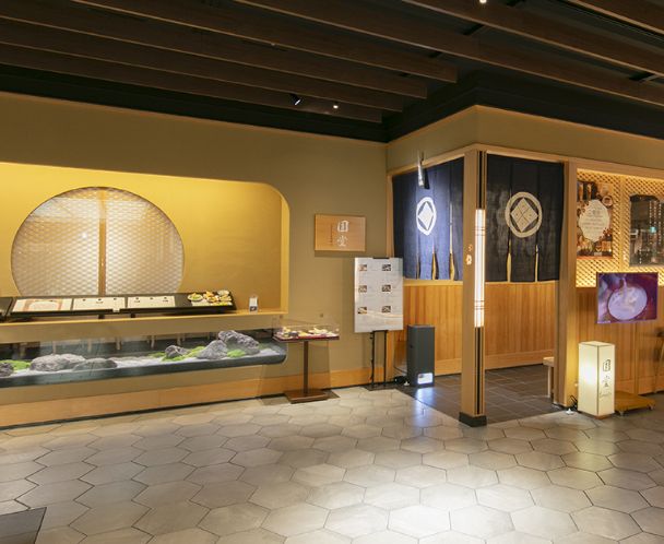 ソムリエやバーテンダーなど各種資格を備えた一流スタッフがおもてなしをするプレミアムカウンターでは、入手困難な希少銘柄や限定品などワンランク上の美酒が楽しめます。B2フードホールの他店のフードを持ち込み可能で、マリアージュ提案もお任せ。例えば、新鮮なお寿司には、透明感とキレのある静岡県の銘酒「磯自慢」を。お買い物の合間にも、本格的バーカウンターでグラスを片手にしっぽりと。