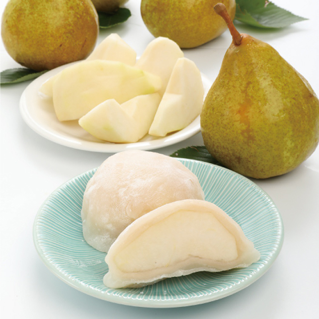 “洋梨の女王”と呼ばれている「ラ・フランス」を、白あんとやわらかいお餅で包んでいます。気品の高い芳醇な風味と、少しとろっとした食感をお楽しみください。