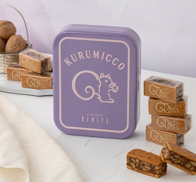 鎌倉紅谷は1954年、鎌倉 鶴岡八幡宮前に誕生した「おいしい」の先にある気持ちを一番大切にするお菓子屋です。 定番商品「クルミッ子」「あじさい」「鎌倉だより」の他、限定デザインの「クルミッ子 10個入(缶)ライラック」やクルミッ子をパイに再構築した「クルミとパイ~クルミッ子キャラメルソースを添えて~」などをご用意します。