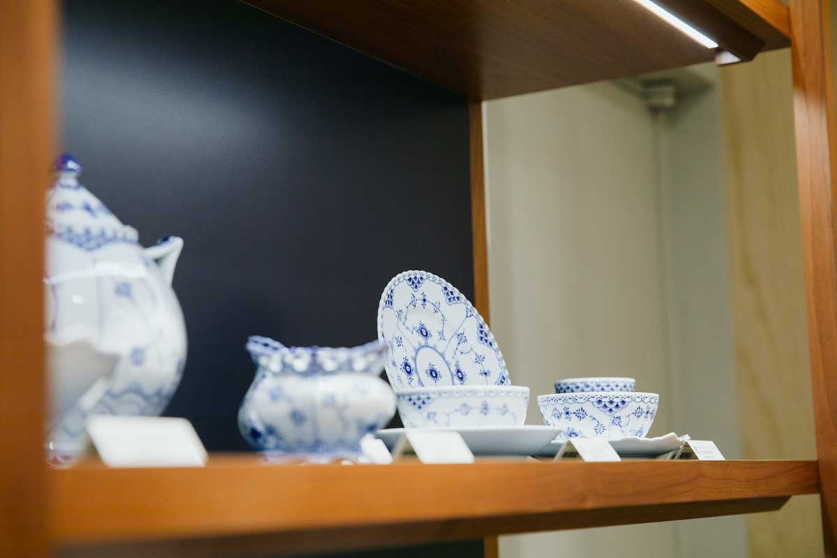 たくさんの調味料や食材を吟味した後は、それらを使った料理を盛り付けるうつわを見に、大丸心斎橋店8階の「ROYAL COPENHAGEN(ロイヤル コペンハーゲン)」へ向かいます。