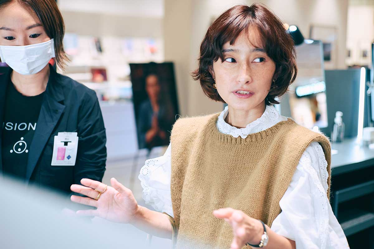 「女性のコスメブランドとは違った提案が聞けるかなと思って、常に注目していて。しかも他のコスメより触ってみたいと思うんです。ユニセックスのブランドだから、想像が追いつかない部分があって」。