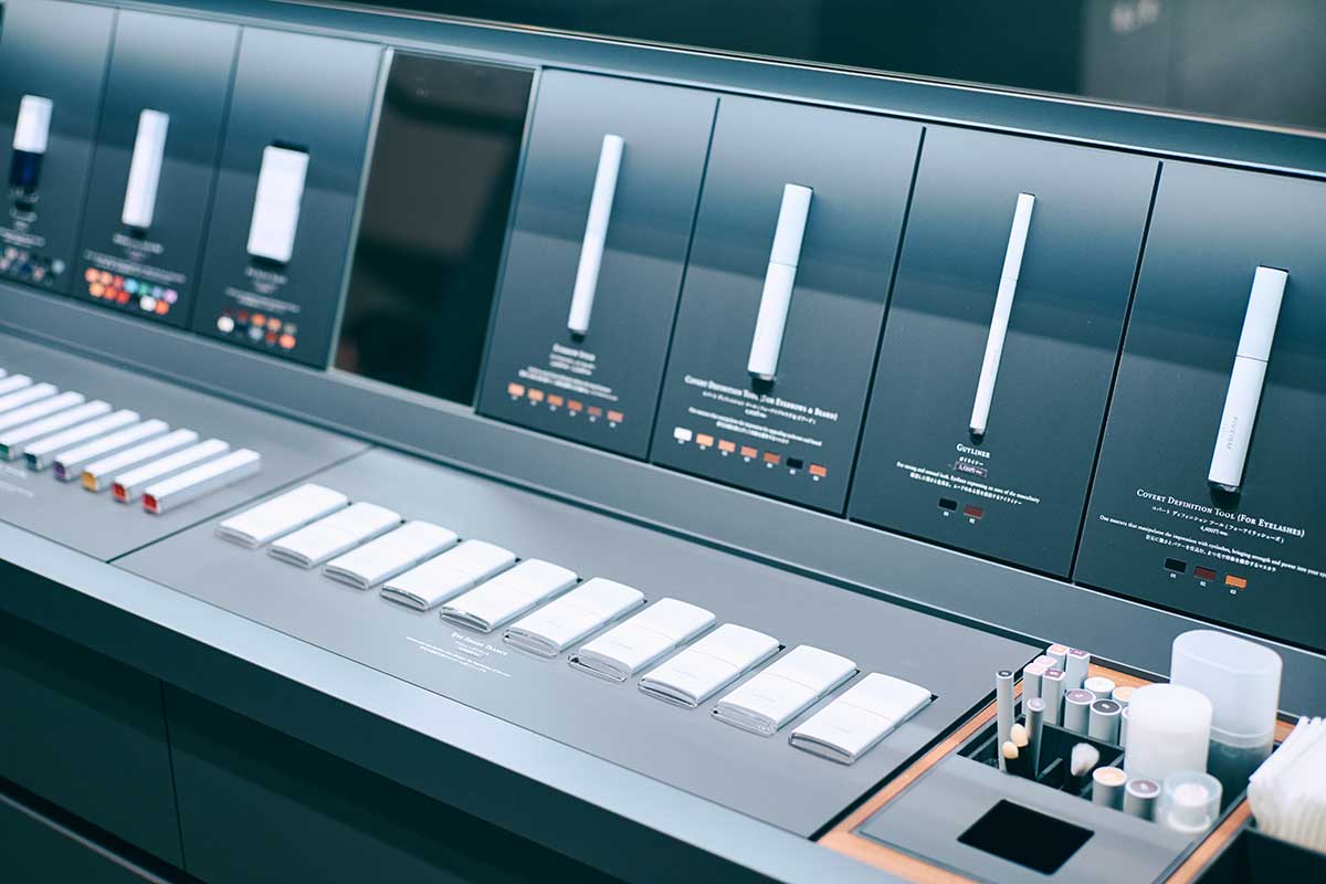 まず訪れたのは、メンズフロアにあるコスメティックブランド「FIVEISM × THREE(ファイブイズム バイ スリー)」。2018年に業界初のメンズ総合コスメブランドとして誕生しながらも、年齢や性別を問わない新時代を切りひらく存在として大きな注目を集めています。