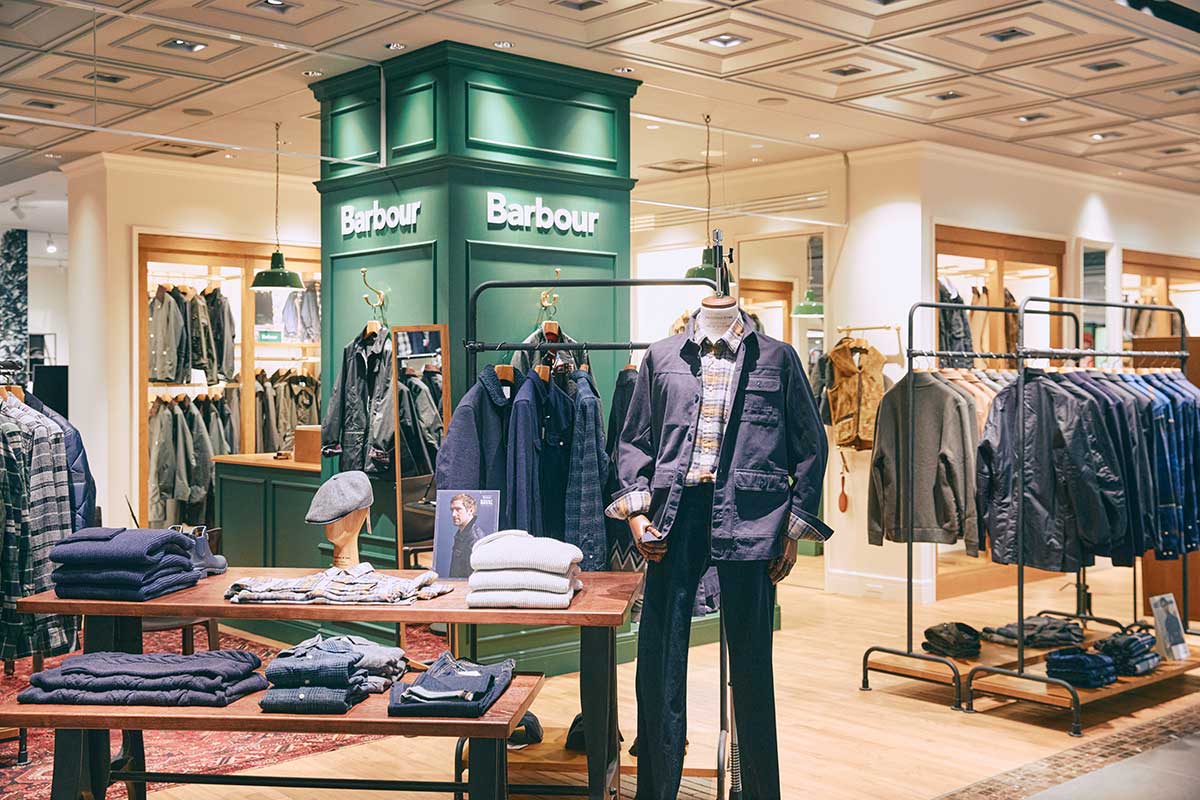 「ファイブイズム バイ スリー」からメンズフロアをぐるりとまわり、続いて訪れたのは「Barbour(バブアー)」。創業は1894年。英国のアウトドア・ライフスタイルを体現するブランドで、代々の主力はメンズですが、近年は女性ファンが多いことからレディスアイテムも続々展開しています。
