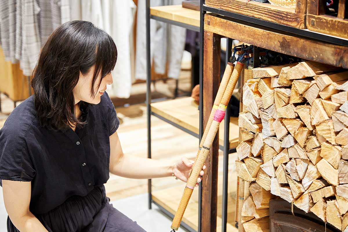 全国にショップを展開する「群言堂」では、ショップの規模に合わせて各店がそれぞれ空間演出をしますが、店舗面積が広い大丸心斎橋店では、ディスプレイも楽しく工夫が凝らされています。