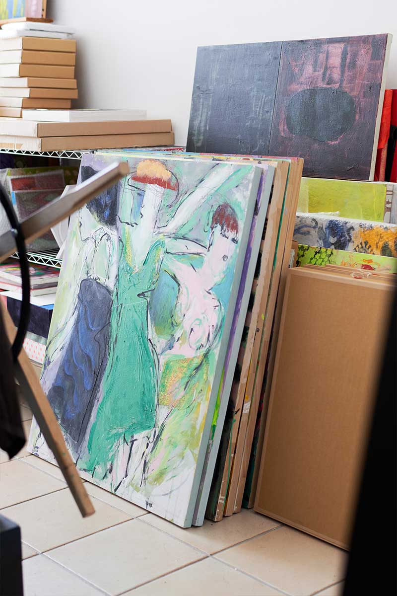 「東京からこちらに帰ってくると、本当に自然がいっぱいですから、こういう環境で絵を描いています。東京へ行くとやっぱり洋服モードになりますから、人間って環境によって自分の行動が変わってきますよね」