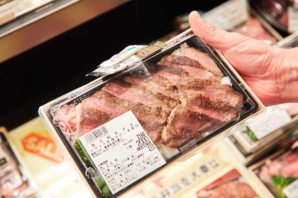 最後に、百貨店の地下食品売場では珍しい、厳選された高品質な牛肉をその場で焼いてくれて、弁当としても持ち帰れるライブ感あふれる惣菜店を紹介します。