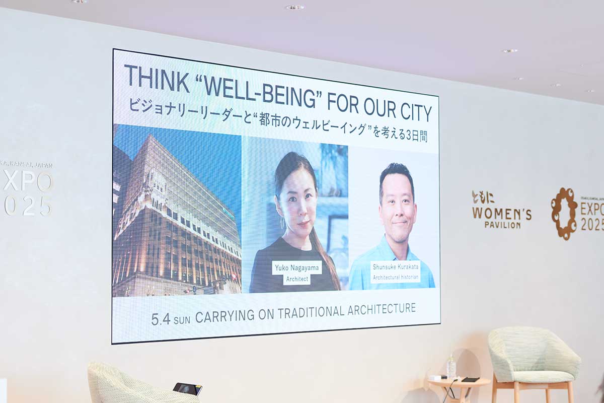 去る5月4日(日・祝)、大阪・関西万博の「ウーマンズ パビリオン in collaboration with Cartier」で開催された、大丸心斎橋店主催のイベント「THINK “WELL-BEING” FOR OUR CITY〜ビジョナルリーダーと“都市のウェルビーイング”を考える」。建築家の永山祐子さんと建築史家で大阪公立大学の教授を務める倉方俊輔さんをゲストスピーカーに迎え、「歴史的建築の継承」をテーマに展開したトークショーをレポートします。