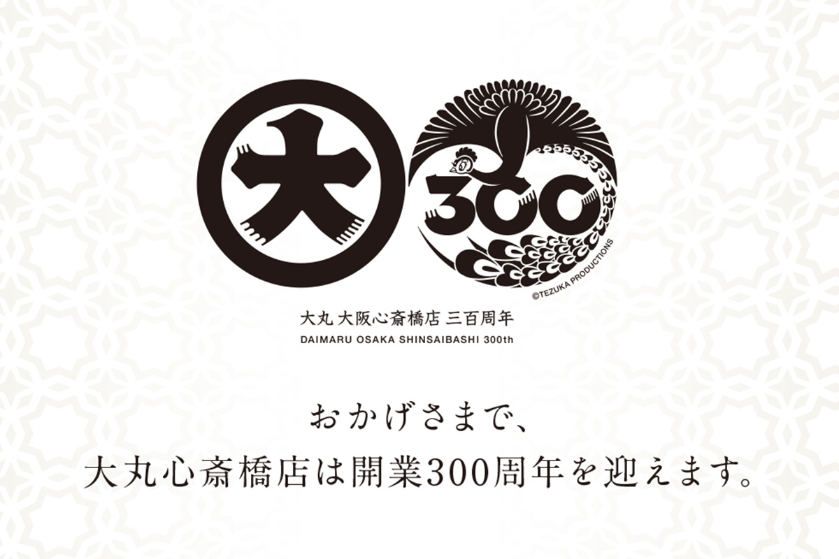 手塚治虫さんが描き続けた未来へのメッセージは、彼が遺した1つ1つの作品の中に生き続けています。そして300年という歴史を通して、大丸心斎橋店も商いの火を灯し続けています。この先に広がる未来へ向けたずっと変わらない想いと新たな決意。優雅に羽を広げて輝く火の鳥が、そんな未来を静かに見守っているようです。